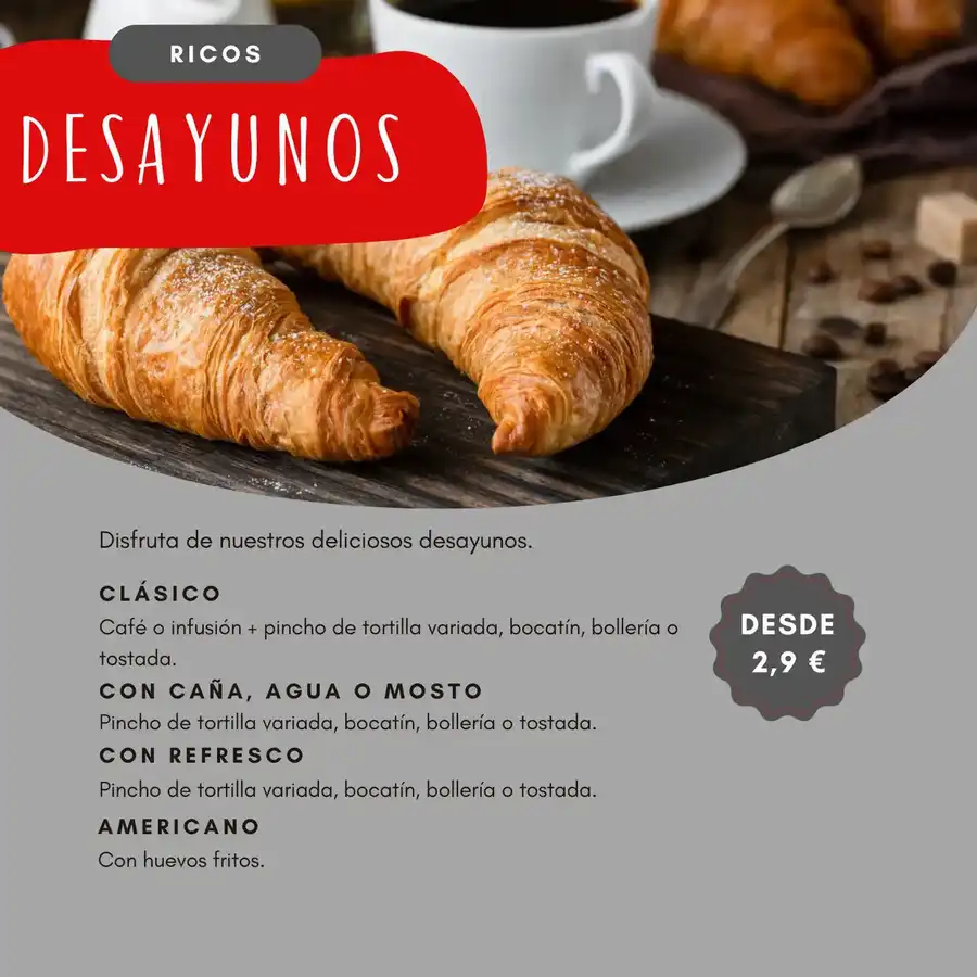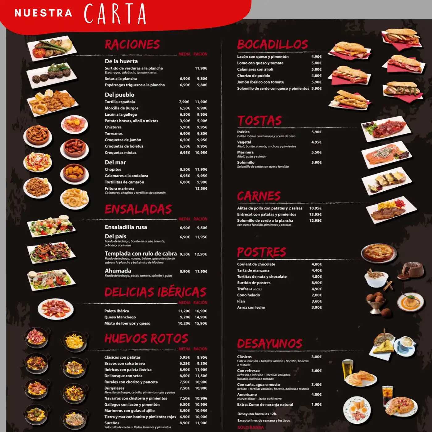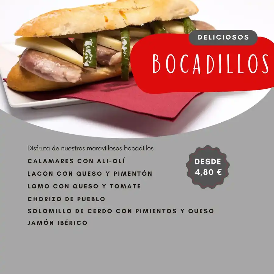 - Una amplia carta de bocadillos: de calamares, de lacon con queso, de jamón ibérico...